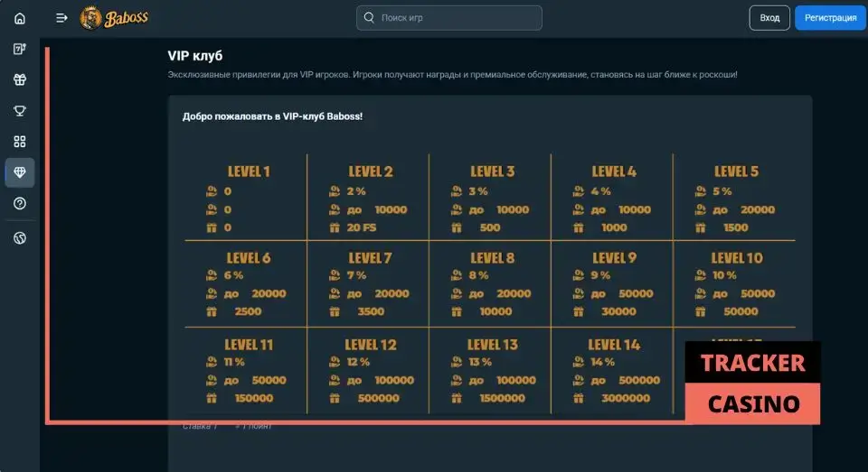 Всего насчитывается 15 уровней лояльности. Чем выше уровень, тем ближе роскошь и лучшие условия для игры. Чтобы попасть в такой VIP клуб, нужно всего лишь зарегистрироваться. Как это сделать на сайте Baboss casino, рассказываем в следующей части обзора.