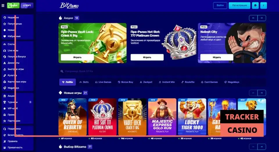 Предпочитаете делать ставки в слотах? В этом случае все дороги ведут к Лобби казино Битзамо, где собраны премиальные игровые автоматы, а также игры в формате лайв и с мгновенными выигрышами. Чтобы не запутаться в разнообразии, продукты разделены на отдельные категории, такие как: