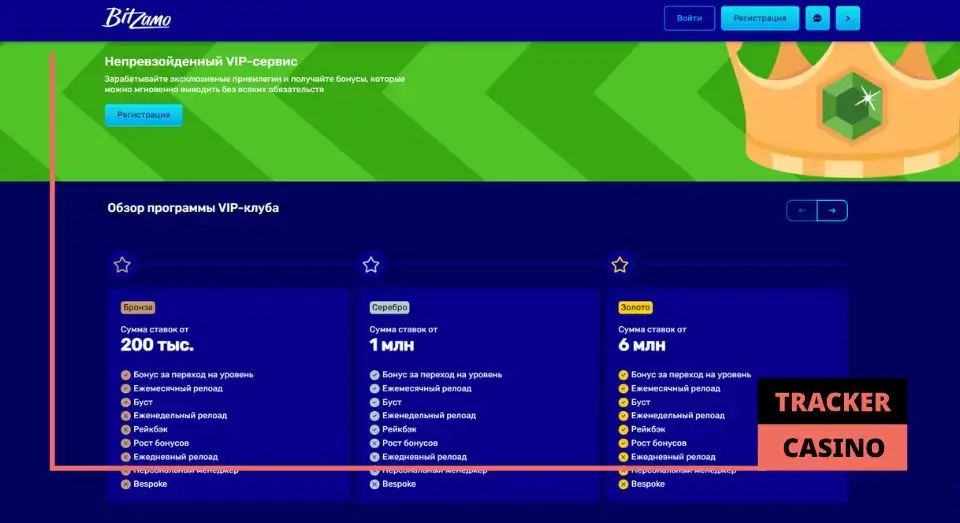 Помимо этого, бонусы можно получать в рамках программы лояльности, именуемой VIP-клубом, которая состоит их 19 уровней. Самый высокий предоставляет ежемесячный релоад, рейкбэк, буст и много других эксклюзивных привилегий. Также, участвуя в акциях и турнирах casino Битзамо можно заработать денежные бонусы на депозит или криптовалюту и просто приятные выигрыши.