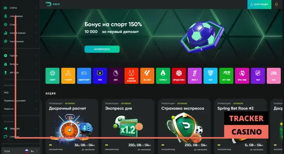 - Спорт. Раздел со ставками на спорт точно понравится тем, кто предпочитает испытывать удачу в беттинге. В нем найдутся не только всеми известные спортивные дисциплины, но и десятки других менее популярных направлений. Например, сквош, спидвей или софтбол. Помимо этого, здесь ожидает целый ряд увлекательных промоакций, в которых можно выиграть ценные призы от Дрип casino.