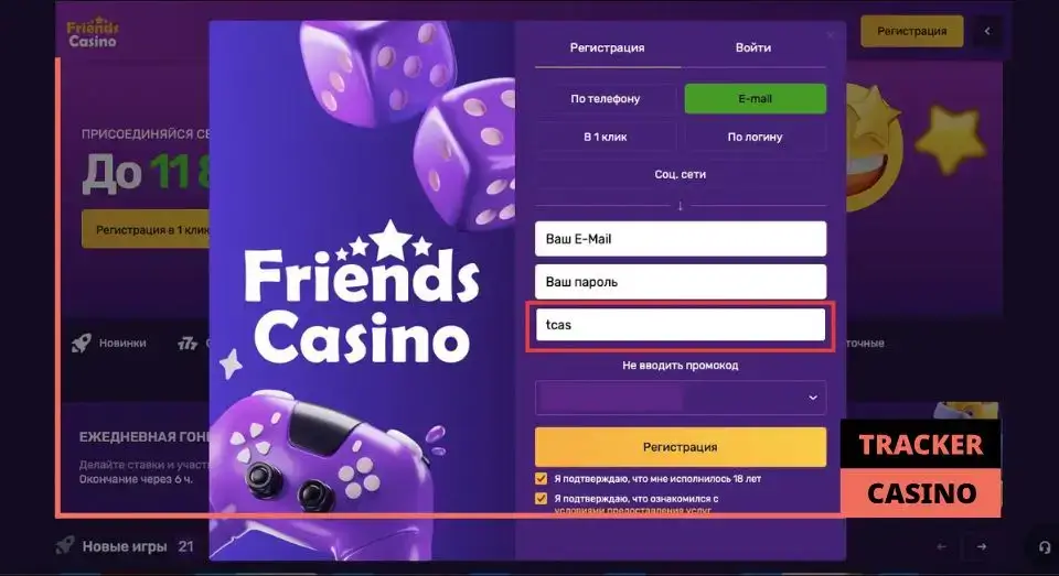 Бонусы всегда делают игру ярче, особенно на первых порах, когда пользователь только зарегистрировался. Во Friends casino промокод tcas отлично справляется с этой задачей, и вот какие преимущества ждут игроков при регистрации с ним: