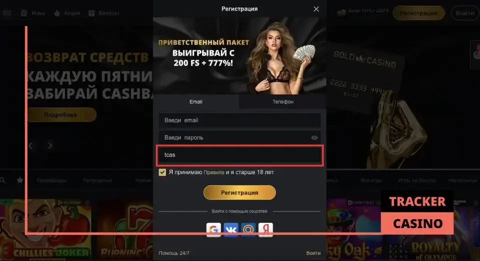 Совершенно бесплатно, без каких-либо условий, мы вручаем для Gold casino промокод tcas каждому новоявленному гемблеру, решившему им воспользоваться. Вот лишь пара преимуществ, которые ожидают игрока при активации данной комбинации: