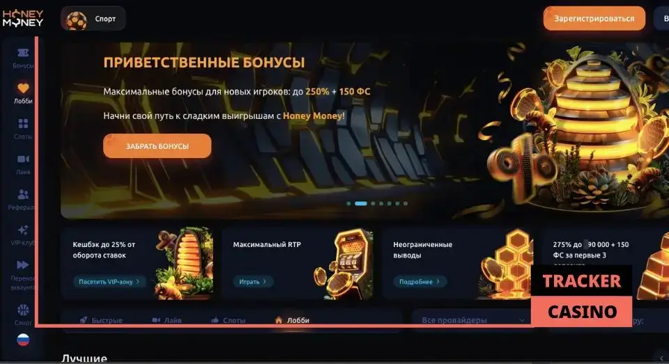 - Нажатие кнопки «Зарегистрироваться» является последним штрихом перед вступлением в ряды клиентов Honey Money Casino.
