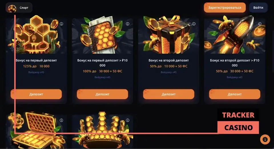 Итого, если вы хотите получить королевские награды, то сумма вашего пополнения должна стартовать от 10 тысяч единиц. Если же вам достаточно минимального бонуса, который, к слову, выглядит не менее достойно, то ваш депозит может стартовать от суммы в одну тысячу. Ну, а в случае, если уж совсем не захочется разбираться в активации депозитных поощрений, у вас уже есть наш Honey money casino промокод — TCAS, который моментально одаривает сотней подарочных спинов, не требующих пополнения игрового счета.