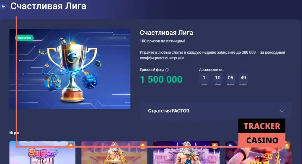 На момент написания статьи Legzo casino обзор на платформе предлагается масштабный турнир Lucky League с призовым фондом в 1 500 000! Участие могут принять до 100 человек. Для тех, кто обожает соревнования, это отличный способ побороться за крупное вознаграждение и получить новые впечатления.