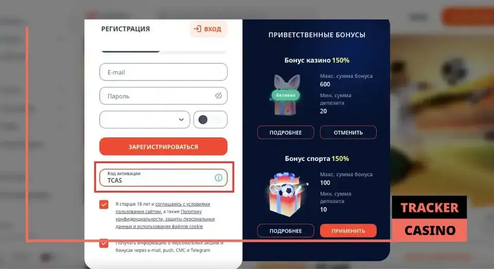 Куда вводить в Monro casino промокод? При регистрации на площадке можно заметить фразу «Есть код активации?», при клике на которую появится еще одна строка. В ней большими буквами указывается комбинация TCAS.