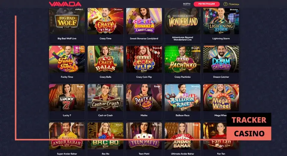 В этом разделе представлено несколько игровых шоу, а также 4 отдельных лобби с играми от Evolution, Pragmatic Play, Playtech и Betgames. Доступ к ним открывается только после регистрации, поэтому, если вы желаете ознакомиться с ними поближе, необходимо пройти данную процедуру. Однако нам удалось заглянуть за завесу и узнать, что скрывается в лобби. Помимо игровых шоу, раздел содержит в себе такие развлечения, как Рулетка, Блэкджек, Баккара, Покер и многое другое. В общем, каждый найдет, чем развлечься.