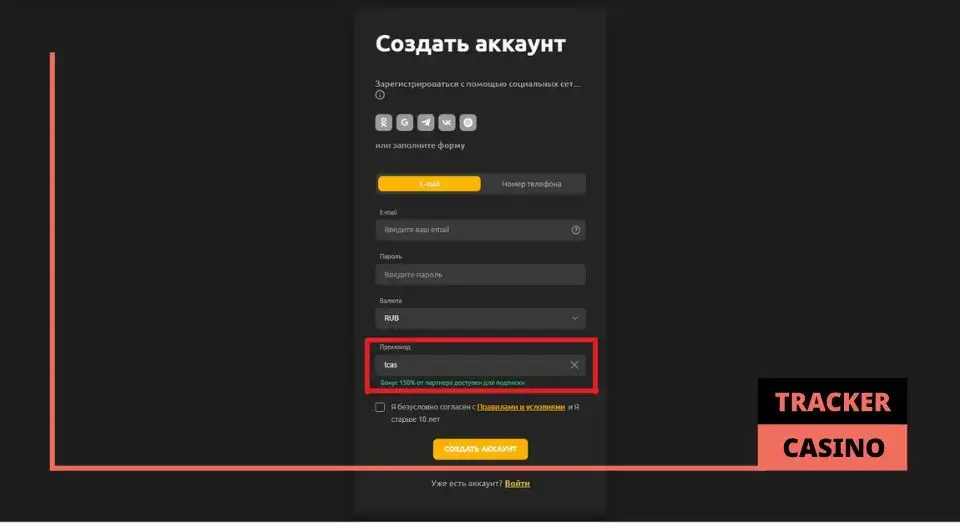 - Заполнение анкеты и ввод промокода. Совершенно простая анкета для заполнения не займет у пользователя более двух минут времени. Но важно в ней вот что: в соответствующей графе гемблер по желанию может указать Vovan casino промокод tcas и именно таким образом активировать расширенный бонус на первый депозит – 150% (до 22 500). После этого данный подарок станет доступен в личном кабинете, о чем платформа обязательно сообщит игроку.